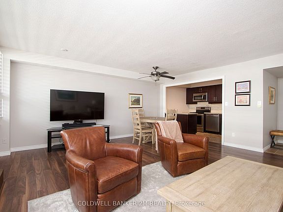 This is one of the nicest units I have seen at McLaughlin Square; No disappointments here. 40 foot long balcony overlooking beautiful courtyard & gardens!Completely Renovated. The kitchen has been remodelled including cabinets, granite counters, backsplash, ceramic floors, & stainless steel appliances. Both bathrooms have been redone. Updated modern flooring throughout. Both heating units are newer. All windows have custom calfornia shutters. Ensuite Laundry & ensuite storage.Building amenities include: heated indoor pool, sauna, games room, library, gym, 24 hour security, party room, exercise room, beautiful courtyard. and indoor car wash bay. Condo fee's include internet, cable TV, water, 24 hour security, underground parking, and building insurance. Walking distance to YMCA, Shopping (Costco), restaurants, parks, schools & downtown campuses of Oshawa's College & Universities & Tribute Community Centre. Minutes to Hwy 401, Oshawa Centre and Oshawa Lakeridge