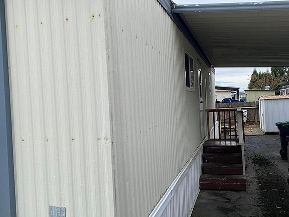 Cozy mobile. Well taken care of. Newer central heating and air system. Also newer double pain vinyl windows throughout. 2 bedrooms and 1 bath. Larger walkin closet in one of the bedrooms. Nice canopies on both sides of the home including carport. Storage shed in the rear.