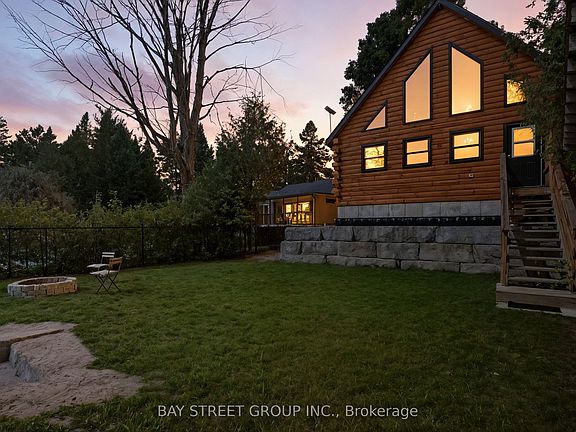 Discover the Ultimate in Waterfront living with this Rare Log home, a style prized for its Soaring Ceilings, Striking Angular roofline, and unparalleled architectural character properties like this are extremely scarce on the market. Every detail has been Thoughtfully designed to maximize Natural light, comfort, and riverfront views.The property features impressive Armour stone landscaping, a highly skilled and labor-intensive construction choice that enhances both aesthetics and shoreline durability, culminating in a stunning large dock for water access and Enjoyment.Inside, the Open-concept chalet-style interior boasts huge windows, a lofted master bedroom overlooking the main living area, and 2 additional bedrooms on the main level. The modern kitchen is outfitted with Stainless Steel Appliances, complemented by a convenient laundry area and a 4-piece bathroom.Outdoor living is effortless, with ample parking in the Front, a spacious Back yard perfect for entertaining, a covered cabana, and a fire pit. Modern comforts include a propane Furnace, AC, owned water heater, and Starlink High-speed internet.The home also includes a new Elgen Septic system,reducing maintenance requirements and heated water line with UV filtration, allowing Year round access. Only thing left is to move in and Enjoy your waterfront paradise. This is more than a home! It is a rare architectural gem on the Burnt River that combines luxury, craftsmanship, and serenity in one unmatched package. Opportunities like this do not come often. Act Fast!
