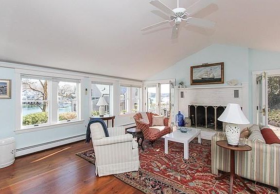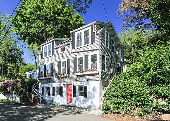 "River House" is a home that invites the sense of endless fun and relaxation! Located in historic Gloucester's Annisquam community. The community fronts on the Annisquam River and the cove. Beautiful water views throughout the house and you can also see the Lobster Cove foot bridge. Sunny charming shingle style cottage, with warm wood floors, has 4+ bedrooms and 3 full baths. Ideal for either year round living or an inviting get-away. Enter into a tiled sitting and mudroom. Perfect when coming home from the nearby beaches, boating, hiking or other outdoor activities. Open kitchen, dining and living room with gas fireplace and two sets of glass doors that lead out to the private patio, where you can really enjoy living on the coast. This floor has an ensuite bedroom, additional full bath and an office the looks out toward the water. On the upper level are 4 bedrooms, two connect with pocket doors, and 3rd FB.