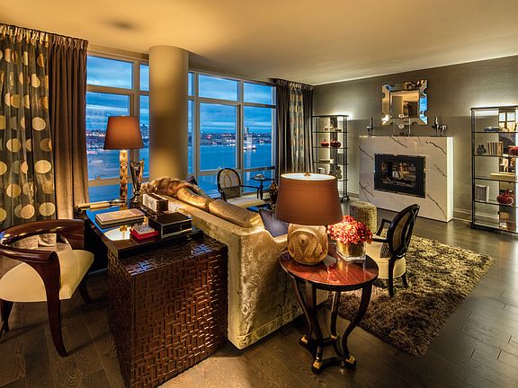 MAJOR PRICE REDUCTION Views. Terraces. Space. Amenities. This magical 12 room duplex penthouse with an oversized wrap terrace and its own private outdoor pool sits high above the Hudson River, offering sparkling water views from every major room. A masterpiece in design and space inside and out, this apartment feels classic and logical, modern and fun. A gracious entrance foyer with an elegant staircase leads to the double-height corner living room which opens onto the apartment's dramatic entertaining terrace. Floor to ceiling windows provide unobstructed views as far as the eye can see. A beautiful library with fantastic river views and a fireplace is just off the living room and is an ideal retreat for cozy evenings. A lovely formal dining room can easily host large parties and is perfect for formal entertaining or a more casual buffet as it is open to the lofty living room. The spacious eat-in-kitchen with appliances by Miele, includes a vented range hood and custom designed white lacquer cabinetry and stone countertops. The kitchen is designed with enough space to cater a big party but also has a bright and charming breakfast/den area that opens to the terrace and the southeast terrace and pool. Upstairs, the luxuriously spacious master bedroom suite, also with open Hudson River views, features two master bathrooms, two enormous walk-in closets, and several additional smaller closets. There are four more bedrooms on this upper floor and two more on the main floor, all with en-suite baths. One Riverside is an impeccably built and run building with white glove service, including 24-hour doorman and concierge service.. The building features over 50,000 square feet of lifestyle amenities, including LA PALESTRA, a 40,000-square-foot athletic club and spa, a 75-foot swimming pool, 38-foot rock-climbing wall, basketball and squash courts, two-lane bowling alley, lounge, and a golf simulator. Spa facilities include locker and dressing rooms, sauna and steam rooms, and private treatment rooms. One Riverside Park also includes an indoor playground designed by Kidville, resident's lounge equipped with a catering kitchen, private screening room, game room and landscaped garden courtyard.