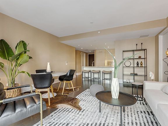 The primary bedroom is large enough for a home office area. It also includes a bath found in a 5-star hotel and three custom closets. The second bedroom has an en-suite bath. Additional features include 9-foot ceilings, hardwood floors throughout, central air, a washer/dryer, and custom closets.