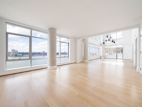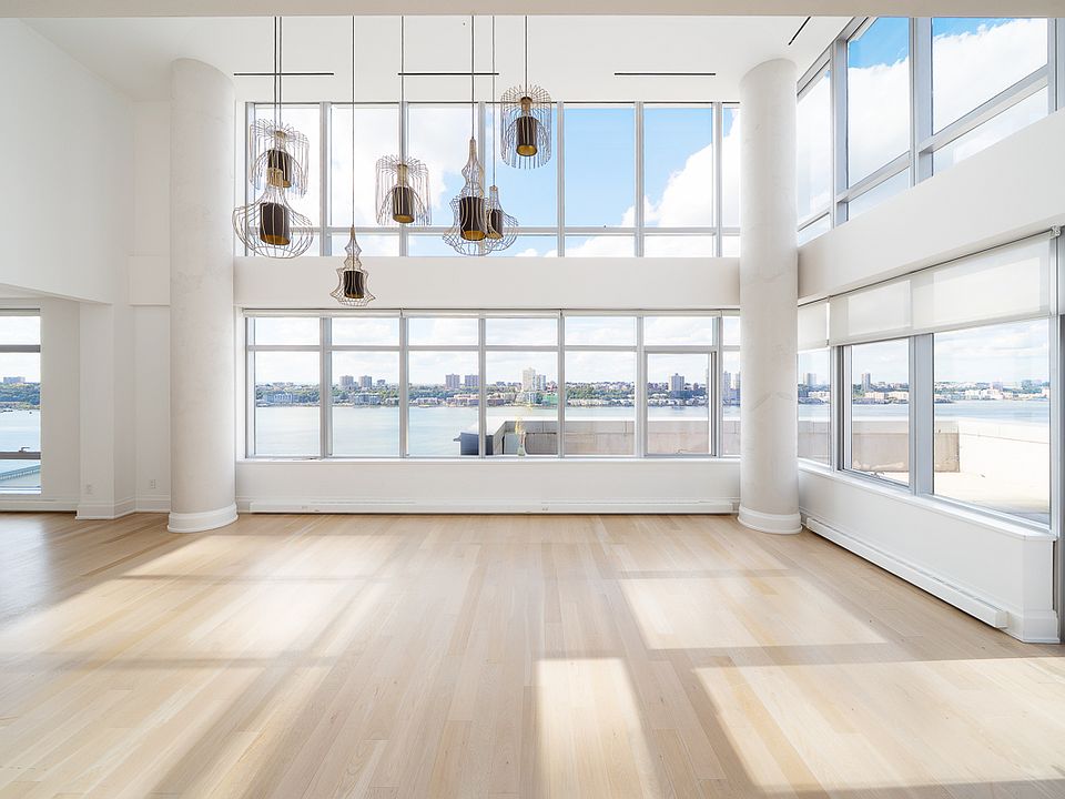 Seamlessly blending over 5,700 square feet of interior living space and a massive 4,500 square foot terrace with private pool, this extraordinary duplex corner residence at One Riverside Park offers elegant city living at its finest. Designed by Shamir Shah Design and boasting seven bedrooms and nine and a half bathrooms and with oak flooring throughout, the home offers exposures to the north, south, east, and west, with breathtaking views of the Hudson River.