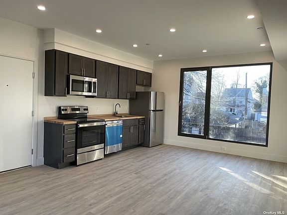 Landlord will give one month free amortized over the 12 months. Brand new construction, triple pane windows, washer and dryer in unit, microwave, walk in closet, open floor plan, window coverings, intercom, security, system, ice maker, central air conditioning, Pet friendly, oversized windows, close long island railroad and shops, deck