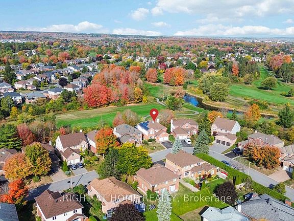 Meticulously maintained 5-bedroom plus den, 5-bathroom luxury residence offering over 4,500 sq. ft. of elegant living space with a spectacular walkout backing directly onto the prestigious Kanata Lakes Golf Course. Perfectly positioned on a quiet, tree-lined street, this home combines refined sophistication, exceptional privacy, and an unparalleled lifestyle in one of Kanata's most sought-after neighbourhoods. The main level exudes warmth and grandeur with stylish hardwood floors flowing through the spacious living and dining areas. A gourmet kitchen features rich, solid cherry cabinets, granite countertops, and heated floors extending into the breakfast area and front foyer. Oversized windows frame breathtaking views of the golf course and its serene skating pond, flooding the space with natural light. Enjoy relaxed evenings by the gas fireplace in the family room, or focus in the private main-floor office, complete with custom cherry built-ins. The upper level offers five large bedrooms, including two en-suite bathrooms and a family bath. The expansive primary suite features a reading nook and a large walk-in closet. The lower level also includes a hobbyist workshop. The fully finished walkout lower level extends the living space with a massive recreation room, a cozy fireplace, a half bathroom which can be converted into a full bathroom, and direct access to the private backyard overlooking the golf course. Additional highlights include a 4-car laneway, insulated garage, large front hall walk-in closet, 2021 furnace, 2024 air conditioner, 2017 hot water tank (owned), new deck (2022) with glass railing, gazebo, 200-amp electrical panel, and tastefully situated custom pot lights. A true masterpiece of comfort and craftsmanship, this home offers the rare combination of elegance, tranquillity, and scenic beauty. Watch the seasons change over the fairways and pond from your own back. An exceptional lifestyle awaits in Kanata Lakes.