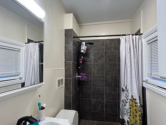 This one bedroom- one bath is in the back of the house-- with a private enterance! This spacious one bed has its own loft style space on the second floor! The living space is large and bathroom right off of it! Bathroom has a stand up shower and tiled floor throughout! The kitchen is spacious with nice new appliances and an area to add a dining room table!