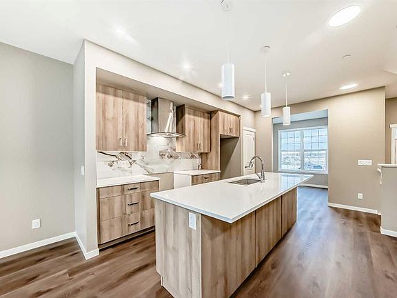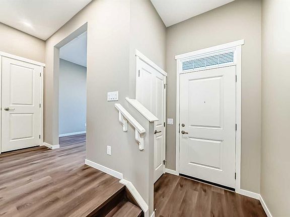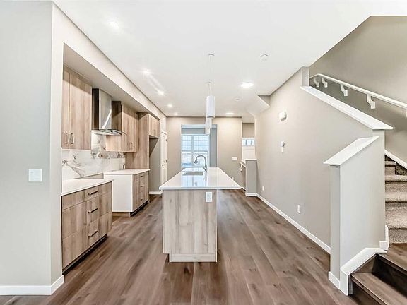 UNBELIEVABLE OPPORTUNITY & A SMART INVESTMENT. This brand-new “Rayn” pairs stylish family living with real income potential thanks to a fully developed 2-bedroom, 1-bathroom legal suite with its own private entrance—perfect for rental revenue or multi-generational living. It’s one of the best 2-bedroom suite layouts you’ll see, with a thoughtfully planned use of space that makes furnishing (and renting) easy from day one. Inside, the main level impresses with warm natural vinyl plank flooring and modern finishes throughout. The central kitchen is the showpiece: natural wood-tone cabinetry to the bulkhead, modern backsplash, chimney hood fan, stainless steel appliances, and bright white quartz that wraps an oversized island—ideal for coffee catch-ups or weekend entertaining. The dining area sits perfectly between kitchen and living, comfortably fitting an extended table for holidays. At the rear, the living room features floor-to-ceiling windows for great light, plus a smartly tucked back entry with a 2-piece bath. Two unique spaces elevate daily life: a versatile flex room just off the kitchen (home office, playroom, or gym) and a raised homework/tech nook overlooking the main floor—clean, functional, and surprisingly fun. Upstairs, a cozy bonus room anchors the level (movie nights, play space, or reading corner). The primary retreat sits quietly at the back with an oversized window, a generous walk-in closet, and a stylish 4-piece ensuite featuring dual sinks and a full-size shower. It feels like it belongs in a much larger home. Hotchkiss is one of southeast Calgary’s newest master-planned communities, celebrated for its wide-open prairie and mountain vistas, quick connectivity, and nature-first design. Framed by Stoney Trail and Highway 22X for easy commuting—and just minutes to nearby Mahogany and Seton—Hotchkiss puts shopping, services, the South Health Campus, and daily essentials within easy reach. The community is anchored by a 30-acre natural wetland with boardwalks and pathways, part of a broader green network that’s planned to include roughly 51 acres of park space and trails, creating a true outdoor playground for walking, jogging, and wildlife watching. Family-friendly planning is central here, with future amenities that include a K-9 school and about four acres of neighbourhood commercial, plus new parks and play areas as the community builds out across its ~237 acres. In short, Hotchkiss offers the calm of nature, the convenience of the southeast, and the promise of a thoughtfully connected community as it grows.