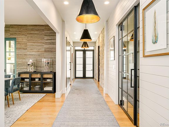 Built in 2018 by Brown Development Group, this transitional masterpiece blends sophisticated design with everyday comfort and endless entertaining capabilities. Sunlight fills the open layout through expansive windows, illuminating designer lighting, layered textures, and curated wallpaper accents. The chef’s kitchen impresses with an extra-large island, caterer’s pantry, wine storage, and an accordion window that opens seamlessly to the covered, heated patio—perfect for year-round entertaining. Thoughtfully designed living spaces flow from cozy gathering areas to a dedicated office with built-ins. Upstairs, the luxe primary suite offers a serene retreat with a standalone soaking tub, custom walk-in closet, and glass-enclosed shower with bench seating. The lower level elevates entertaining with an expansive lounge, guest quarters with built-in bunks, and a rare indoor basketball court, as well as a dedicated gym for ample recreation. Every inch of this home is crafted for beauty, function, and modern Denver living — all while being conveniently positioned two blocks from Crestmoor Pool + Tennis and moments from neighborhood restaurants and a corner market. Additional features include a three car garage, 6 raised outdoor garden beds, 4 oversized bedrooms up, 3 zone HVAC, custom backyard trellis and a whole home Aprilaire steam humidifier system.