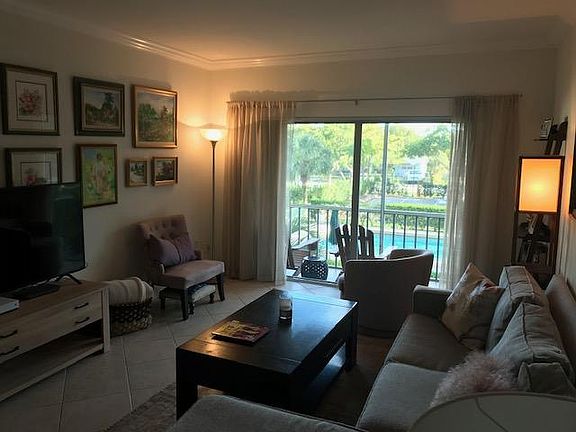Community: Boca Center Plaza. Lovely 2/2 East Boca Raton location. Walk to Mizner Park, shops, restaurants, library, city tennis club. Only 1.3 miles to beach. 2nd floor, corner unit, crown molding throughout, tile floors in living, dining and kitchen areas, carpeted bedrooms, cherry wood cabinets and granite countertops in the kitchen, hurricane impact windows and sliding door, screened balcony/patio, pool view. Rent includes water and basic cable. No smoking. Condo Approval required with $100 application fee. One year minimum lease required. Pets allowed w/restrictions. No subletting or Airbnb.