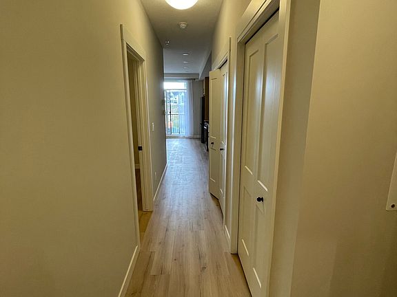 Brand new 2024 built condo! Located in the desirable community of Sage Hill is the perfect one bedroom, one bath condo for the professional, a couple. It features many upgrades with 10' ceilings, and air conditioning. The bathroom has upgraded vanity, quartz countertops and tile floors. Luxury vinyl flooring (LVP) through out, with full kitchen that has new stainless steel appliances (Stove, Refrigerator/Freezer, Microwave, Range Hood), farmer style large sink and quartz countertops. Kitchen has floor to ceiling cabinets including a pantry with lots of storage. The bedroom has full closet and can fit a king size bed. This bright condo is inviting and has a large living space that opens to a large balcony for BBQing. You have the convenience of in-suite laundry, storage locker and a outdoor surface parking stall. Live with the meters away for the convenience of the Sage Hill Shopping Plaza including T&T Supermarket, Walmart, Dollarama, Bulk Barn, Value Village, etc. Many restaurants close by from fast food to sit down restaurants, this area has so much to offer. So many options within walking distance. You have quick access to Shaganappi Trail and Stoney Trail, plus there are 3 buses to 3 C-train stations right outside. Super easy to travel west to the mountains. 17 mins to Cross iron Mall, 19 mins to the University of Calgary, 20 mins to the Calgary international Airport. Owner pays for water and heat. Tenant pays for electricity and cable/internet