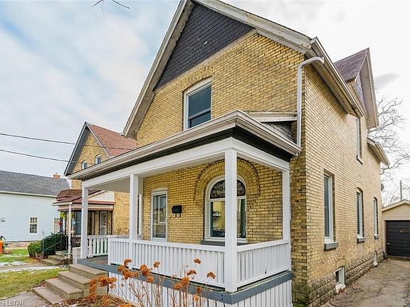 Century home. Move-in condition. Located in a quiet neighbourhood, close to all amenities. No major work required. Upgraded kitchen with oak cabinets and built-ins. Huge living room with natural fireplace, (currently not in use). Separate dining room. Full-size bathrooms. Upgraded windows, hardwood flooring on both levels, central air, 100 amp breakers, 4 appliances included as is. Garage with hydro. Deep paved driveway.