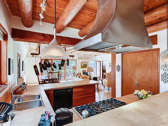 Beautifully remodeled four bedroom three bath adobe home on 12.9 lush protected acres with serene unobstructed views of the mountains and the verdant rolling hills with an archeological conservancy and pueblo ruins across the arroyo. Architectural features include gorgeous stone floors, in-floor radiant heat, custom cabinetry with stone counters, Dynasty range, clerestory windows, vigas and beams, American clay and plaster walls, wine storage, and exquisite bath finishes including Bain ultra tub with designer bath tile details. Excellent floor plan allows for two separate wings of bedrooms and two separate living rooms with streams of natural light and views. The home is energy efficient with adobe and rastra walls, is bermed-in on one edge, and has two water heaters including solar heated water. Additional features include in-wall Bose speakers, custom bookcases, custom cabinets, custom doors, custom steel storage cabinet and hand-forged steel bar stools by Taylor Mott, and a stone garden fountain by Range West. Home is on a pre-moratorium well with excellent water quality and production. Brand new features include a new roof, new electric hot water heater, and three new windows. Property is located off of a quiet, county-maintained road that ends at a private drive. Very peaceful superb location. Horse stables are allowed, as well as a guest house or 2nd home. internet is with NMsurf