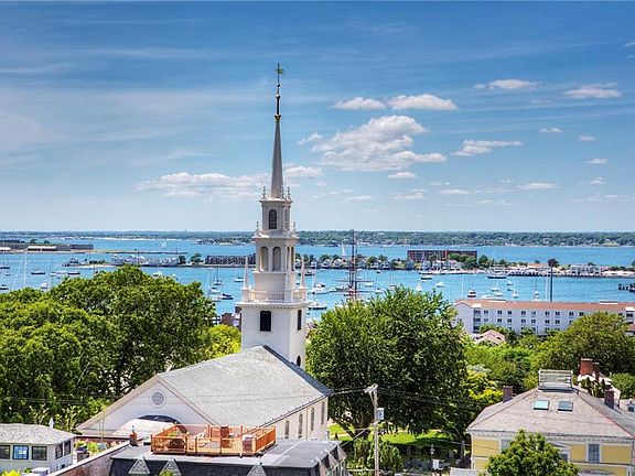 Penthouse chic welcomes you in this elegant, sparkling top floor unit. Soaring ceilings, oversized windows, beautiful finish detail and generous space are just the beginning in this airy open floor plan. The upscale amenities include a fabulous kitchen, two private decks, two assigned garage parking spaces, a private storage unit and elevator. The building is a masterful blend of the charm of an historic structure and the most up to date comforts. A common area rooftop deck complete with wet bar, beverage refrigerator and outdoor furniture is perfect for relaxing and enjoying sunsets and harbor views. The sought after location on Historic Hill is steps from restaurants, theaters, shops and all the attractions of Newport.