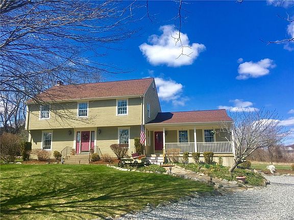 Welcome to 50 Schoolhouse! This Center Hall Colonial is a true 4 bedroom. It has 2.5 bathrooms & is made for entertaining. 2 large decks & swimming pool situated on a large 1 acre wooded lot with a fully fenced back yard. Features a stunning cathedraled Great Room flooded w/ sunlight from sky lights. New kitchen has rich cherry cabinets, granite countertops, tile backsplash & brand-new stainless appliances. Cute breakfast bar peninsula w/ stools. Perfect sized eat-in kitchen and separate formal dining room which leads to a warm front to back living room w/ a beautifully painted enamel wood stove. Master bedroom features 2 closets & a stunning en suite travertine bath w/ granite double vanity & extra large tile shower. Fully Finished large basement could be theatre, fitness or play room. Nice 2.5 car oversized garage. Brand new roof & windows. Nestled in the East Warren countryside surrounded by farms & a golf course it is the perfect location- 5 minutes to the highway, 15 minutes to Providence and less than 1 hour from Boston & Cape Cod beaches. A few minutes away from some of the best restaurants RI has to offer, the bike path & the Warren town beach! Come see what country living is all about! Bring your dogs & chickens! Walk to freshwater fishing. Rare opportunity to get into the best part of Warren. Forever home neighborhood! Walk to Frerich Farm for food trucks & pumpkin weigh offs. Over $650,000+ already invested in this property. Anyone would be proud to call this home!