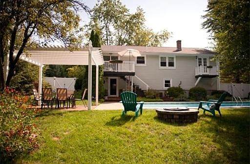 Not your typical split! This home has undergone a transformation from a 3 bdrm home to 2 bdrms w/spectacular front to back Master w/private balcony. Keep as a 2 bdrm or easily convert back to three...the choice is yours! Completely updated kitchen w/granite, SS appl & french doors leading to deck overlooking heated inground pool. Fully fin walkout bsmt offers 3/4 bath & makes for a spacious family room/office. Central Air/Vac plus hardwood floors complete this meticulous picture perfect home!