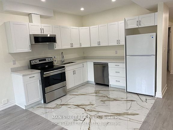 "Welcome to this newly renovated, light-filled basement apartment that backs onto a scenic ravine. This legal 2-bedroom, 1-bathroom unit boasts a modern, open layout that rivals upper-floor living, with large windows and pot lights throughout. The kitchen is a highlight, featuring soft white cabinetry and sleek light grey laminate flooring, adding a contemporary touch to the entire space. Tenants benefit from their own private laundry room with newer appliances. Enjoy a walk-out to a deck and spacious shared backyard, with the convenience of a separate entrance. Safety is a priority, with new exterior lighting along the side of the home. With 9 ceilings, this unit is situated in a family-friendly neighbourhood near parks, shopping, a new school, and easy access to major highways."