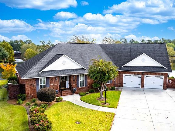 Beautiful waterfront custom built home in Deerfield Courtyard. Located in a quiet cul-de-sac! This home features several views of the water with retaining wall. Plantation shutters. Large Foyer and Dining Rm with built-in cabinets! The Great Rm has a Trey ceiling with long windows! Sunroom adjacent to the great rm & Eat-in Kitchen. The Kitchen features white cabinets & solid surface countertops. New roof 2007, Heating sys 2014, AC 2017. New windows 2016, Driveway 2017,Garage doors 2019. Extra Lg Garage & Workshop! Sprinkler system & Termite Bond! Brick Fence! Sold "AS IS".!