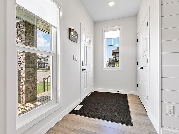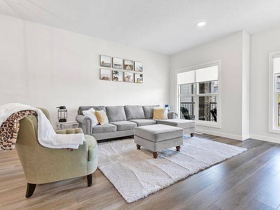 Welcome to this beautifully designed 3-bedroom, 2.5-bathroom home in the sought-after community of Sienna. Offering 1,575 sq. ft. of thoughtfully planned living space, this residence blends modern finishes with functional design. Step inside to find an open-concept main floor featuring a spacious great room and a contemporary kitchen with classic 1.25” quartz countertops, stainless steel appliances, a large island with pendant lighting, and sleek black hardware throughout. The upgraded finishes, including California knockdown ceilings and durable laminate flooring, add both style and comfort. Upstairs, the primary suite offers a walk-in closet and a private dual sink ensuite. Two additional bedrooms, a full bathroom, and a convenient upstairs laundry complete the second level. Additional highlights: corner lot offering enhanced curb appeal & additional natural light, Detached double garage with 8’ overhead door & upgraded electrical ready for a future EV charging station, Central air conditioning.