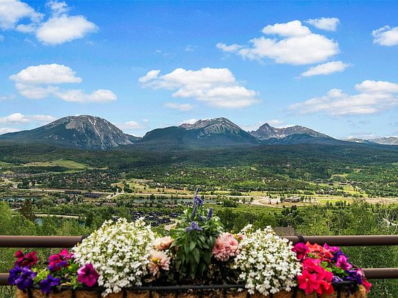 Arguably some of the best views in Silverthorne! Step into panoramic vistas stretching from the Ten Mile Range to the Gore Range, overlooking serene ponds, the Town of Silverthorne, and the beautiful Blue River. Every season, every sunrise, and even every storm paint a new and captivating scene right outside your windows.