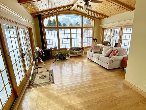 This stunning 3 bedroom colonial is situated on 3.6 acres of beautiful land and views. Relax in the cozy sun room with your blanket during colder months or walk onto the patio and enjoy a nice warm summer night with friends and family. The classic kitchen is open and airy with a formal dining room that leads into the living room with a full wall of custom built-ins surrounding the fireplace. First floor laundry along with a full bath and walk in access to the home from the two car garage makes this home very practical. Many unique qualities are the central vac as well as a pellet boiler and a garage door in the basement for easy access. Close to town as well as Aroostook State Park and Echo lake for all of your outdoor enthusiast needs. Seller has included the washer/dryer, lawn mower and snowblower with the sale of the home.