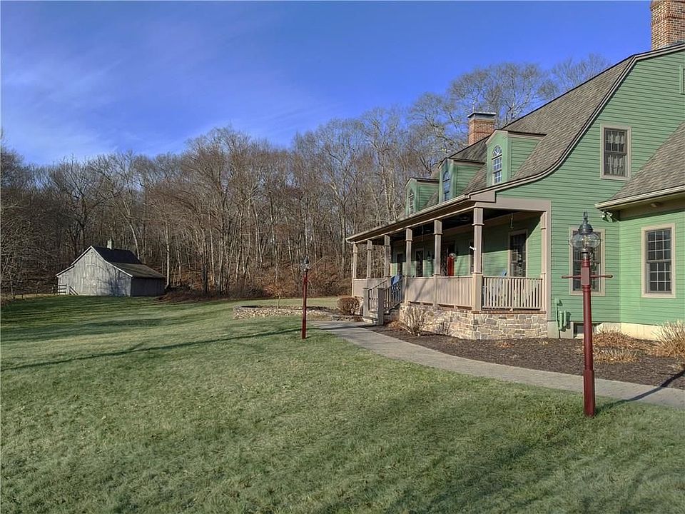 Turning off the quiet neighborhood street, you check the directions, the crushed stone drive is clearly not a street, the only houses in sight are those disappearing in your rear-view mirror. The land rises to your right, classic deep granite boulders protruding from the wooded hillside; to the left, beginnings of a cultivated field.Emerging from a gradual tree line the home comes into view; overlooking pasture, pond and barn. Cobblestones outline the driveway approaching the twin garages, the walkways bring you to the stone stairs and up to the covered porch. The exterior is in a shade of green that speaks of harmony and stability. Your first thought:This house is truly special. Lets go inside.The floor plan creates a wonderful entertaining space while still allowing a variety of places to find oasis. Like sailing vessels from the past, the details expressed in wood, glass and stone command your attention. The kitchen boasts new granite counters that have such a light shade, they seem to float above the oak and other woods used throughout the house.The baths,3 have been remodeled in stone, ceramic and glass.The master en-suite boasts a large walk-in closet. Additional rooms include a den,living room w/wood burning fireplace and an office. Laundry area is on the first floor. Front foyer is roomy and inviting.29.29 Acres,2 small ponds, 2 stall barn w/add storage, minutes to downtown, beaches and Rte 95.