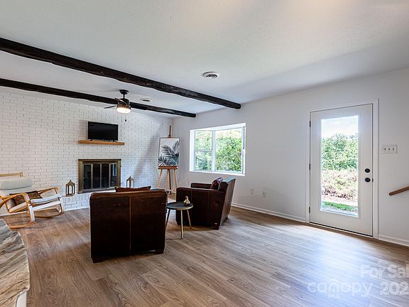 Welcome home to the peaceful and convenient neighborhood of Botany Woods. Located just outside the city limits, there are no city taxes, no restrictions on short term rentals, no HOA, and year round mountain views! Enjoy these incredible views with your morning coffee and evening cocktail from the large front deck. Eat dinner al fresco on the newly installed pea-gravel (bare-feet friendly) patio right outside your kitchen/dining area. The open floor plan makes this iconic ranch live large. The kitchen features newly painted cabinets, granite countertops, a kitchen island/breakfast area and a new tiled backsplash, all in elegant neutral creams and whites. Living room features an electric fireplace providing an architectural focal point and additional heat for the main living area. Home is all wood and tile flooring – no carpet. The lower level offers a large second living space featuring a beautiful painted brick wood-burning fireplace, a newly remodeled bonus/flex room with full en-suite bath, and large finished laundry room with plenty of space for storing cleaning supplies or pantry items. This level makes the home ideal for guests, a teenager or a multi-generational family. The one-car attached garage has ample room for a workshop or studio space.