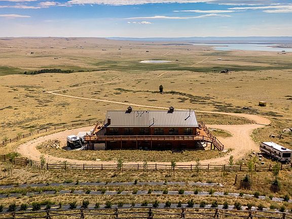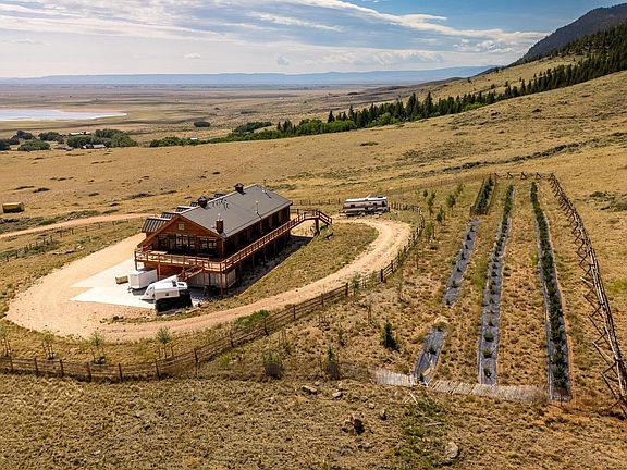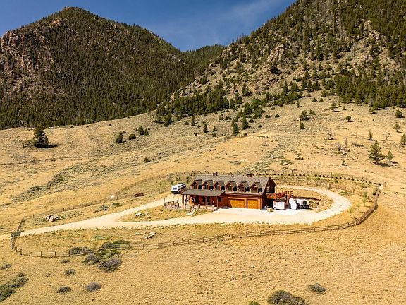 Welcome to your mountain retreat—an exquisite custom-built Deerwood log home nestled on 40.17 acres in the sought-after Wild Horse Ranch community. Bordering National Forest on Sheep Mountain, this one-of-a-kind property offers privacy, luxury, and breathtaking natural beauty. Step inside to discover a warm and inviting 3-bedroom, 2.5-bath home with an added guest loft and thoughtful high-end touches throughout. The open-concept kitchen features granite countertops, a copper farmhouse sink, and seamless flow into the living and dining areas—perfect for entertaining or cozy evenings at home. Retreat to the expansive master suite, complete with a home office area, picture windows framing mountain views, a heated towel rack, and a spa-like bath featuring a clawfoot tub, glass shower, and in-floor heating. Both upstairs bathrooms offer radiant floor heat for year-round comfort. Enjoy over 2,000 sq ft of wrap-around deck and a covered patio area—ideal for warm summer days or watching mountain storms roll in. Outdoors, the property boasts over 700 growing trees with a full drip irrigation system. Additional features include a heated 3-car garage with an attached shop area, two horse stalls with a washing station, a main-level game room with built-in desk, laundry, and a wet bar. The home is equipped with a security system, air conditioning, a reverse osmosis water system, invisible pet fence, one wood stove, two gas stoves, built-in bookshelves, and an integrated indoor/outdoor stereo system—offering a perfect blend of luxury and functionality. This extraordinary home offers unmatched comfort, space, and connection to nature—all just steps from the National Forest. Too many features to list—please contact the listing agent for a complete amenity sheet.