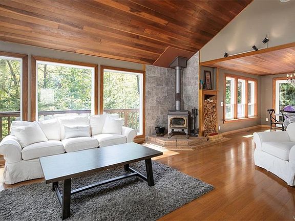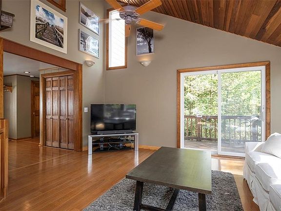 Fabulous contemporary with 3 levels of living tucked into a private lot overlooking a creek. Perfect for entertaining, the main level features an open floor plan with cathedral ceilings, wood burning stove, large dining room, a wall of windows, and 2 sliding glass doors to access a deck that extends the width of the house. Wide open kitchen has a breakfast bar, island, loads of cabinet and counter space. Large 1st floor laundry room/pantry off kitchen. Lower level has a large den/family room with gas stove, an extra bedroom, and a private deck near a creek. Upper level has a fantastic master bedroom with walk-thru closet and deluxe en suite bath, plus another 2 bedrooms and main bath. Located near the community pool and playground. Square footage per appraisal dated 6/15/16.