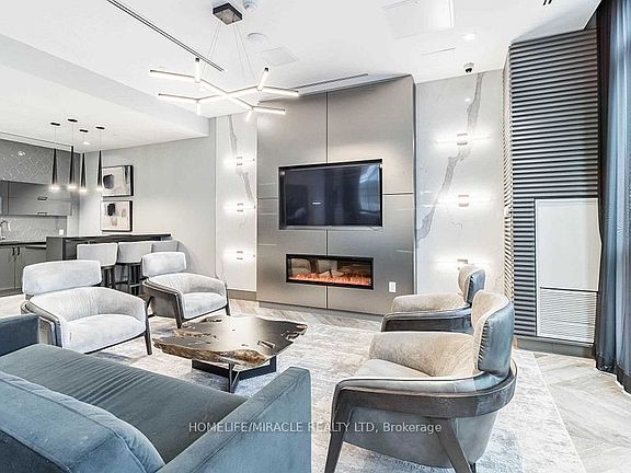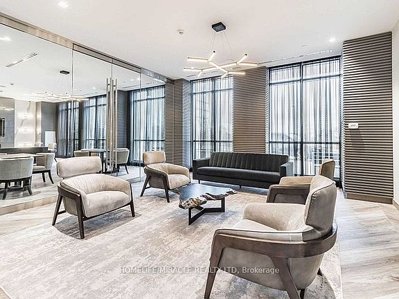 Exclusive Corner Unit boasts floor to ceiling windows that stretch from East to West corner providing unobstructed panoramic views with Wrap-Around Balcony Overviewing The City And Lake, Offering Almost 1000 Sqft Of Living Space Large Primary Bdrm With A 3Pc Ensuite And Walk-In Closet. Fully Enclosed Den Ready To Become An Office Space. 9-Foot Ceiling. Chef-Inspired Kitchen With Quartz Counter Top And NEW Stainless Steel Appliances. CLOSE TO SUBWAY, TRANSIT AND GO STATION AND ALL MAJOR HIGHWAYS! Amenities: Fully Equipped Gym, Yoga Studio, An Inviting Party Room, Incredible Rooftop Terrace Featuring BBQs And A Children's Play Zone.