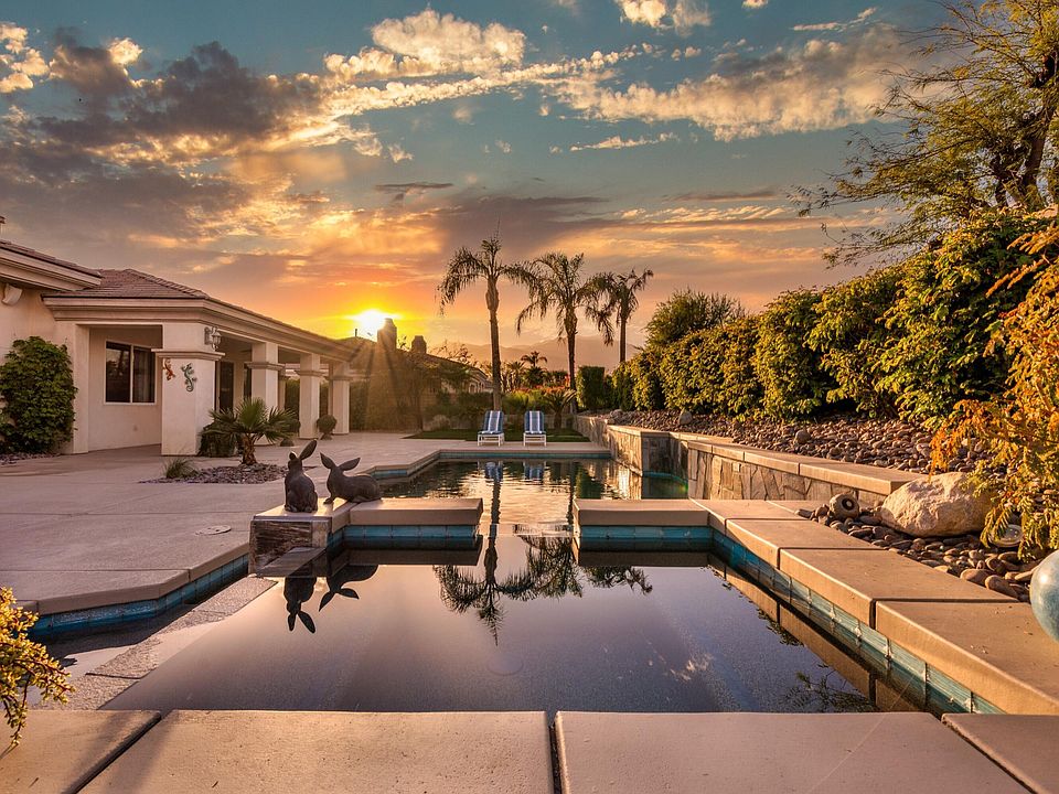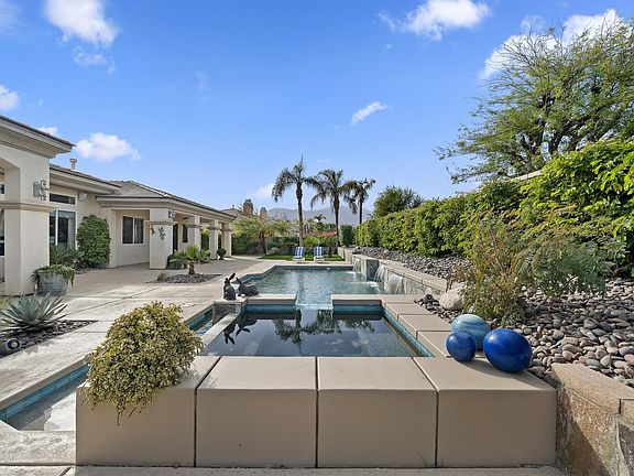 Welcome to La Toscana, where luxury, privacy, and timeless desert architecture come together in one of Rancho Mirage's most coveted gated enclaves.Set on a sprawling 14,810 sq ft lot, this 3,545 sq ft residence is truly one of a kind -- the only home in the community with a full three-car garage plus dedicated golf cart storage.Step inside to soaring 12-foot ceilings and walls of glass that fill the home with soft desert light. The open-concept floor plan is anchored by an elegant granite fireplace and a sophisticated wet bar, creating a perfect setting for both everyday living and stylish entertaining.The chef's kitchen is a true showpiece, featuring premium stainless steel appliances, gleaming granite countertops, a generous prep island, and a bright breakfast nook overlooking the backyard.The luxurious primary suite offers three closets, a spa-inspired bathroom, and a private outdoor shower for the ultimate retreat.Outside, discover your resort-style backyard -- an entertainer's paradise with a saltwater pool, cascading waterfalls, elevated spa, tranquil wading area, and a spacious covered patio. Lush, mature landscaping wraps the space in total privacy, creating a serene desert escape.Located in an intimate community of just 44 residences with remarkably low HOA fees, this home offers exceptional proximity to world-class dining, shopping, golf, and the highly anticipated Disney Cotino development.Experience the pinnacle of desert luxury living in this rare Rancho Mirage offering.
