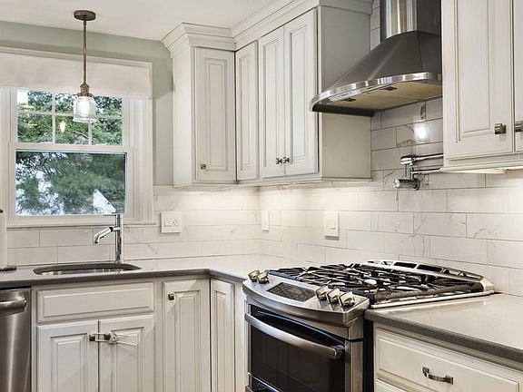 This is the home you have been waiting for! A tastefully updated split-level floor plan perfect for entertaining! Fresh and new both inside and out - New walkway with granite steps, New front door with side panel, and a Newly tiled entry. Beautiful kitchen skillfully designed with new cabinetry, lighting, quartz countertops, an oversized island with built-in beverage cooler, stainless steel appliances with mounted pot filler at the stove, and expanded doorway leading to the sun-filled dining room. The refinished hardwood flooring and neutral color palette throughout the main floor create a warm flow. Both bathrooms have been nicely remodeled. The 1/2 bath was expanded to include a main floor laundry area. Large finished basement is open and bright with a brick fireplace, recessed lighting, tile flooring, and a newly installed mini-split system. Enjoy gathering on the recently completed Trex deck w/Azek railings & fenced in backyard! New A/C and Heating System. Ready for offers!