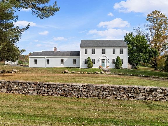 Don’t miss this timeless and captivating storybook New England estate, once home to Revolutionary War Lt. Jonathan Brown. This 1748 Colonial boasts over 3,400 sq ft, 4 bedrooms, 2.5 baths, and sits on 24 pastoral acres in Brimfield’s highly rated Tantasqua district. Enter to find a classic yet modern floor plan with gorgeous wide plank hardwood floors and an upgraded chef’s kitchen that includes high end appliances, coffee bar, and so much storage! The main level also offers 2 living rooms, dining room, 4th bedroom, half bath, and a gym. Upstairs, find 3 generously sized bedrooms including a vaulted primary suite and 2 brand new bathrooms. The 3rd floor offers bonus living space potential. Major capital updates: new roof (main house), new Pella windows and doors, new electrical and siding, etc. Outside, find an equestrian or hobby farmer’s dream featuring 2 barns w/ 9 stalls, 4 acre hayfield, chicken coop, multiple turnouts, dressage arena, paddocks, wash stall, hayloft. and much more!