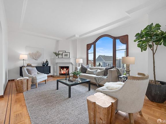This fully-detached Spanish Mediterranean home radiates timeless San Francisco charm from the heart of the Portola district. Classic 1940s details with original parquet wood floors and walnut inlay, arched doorways, tray ceilings, and original wood doors, create a warm, elegant backdrop throughout. The formal living room features arched windows with a Juliet balcony and a striking fireplace, flowing into a bright, spacious dining room ideal for gatherings. Beyond, French doors open to a cheerful breakfast room with skylight ceiling bathing the home in natural light. Upstairs are two generous bedrooms overlooking the garden, a vintage kitchen, a pastel-tiled bath with separate tub & shower, and ample natural light throughout. A versatile lower-level bonus room with half bath offers flexibility for a guest suite, home office, or media room. The sunny backyard includes a flat patio and raised garden beds, perfect for outdoor entertaining. Finished with an oversized 2-car garage plus driveway parking, W/D hookups, endless amounts of storage space or substantial expansion potential. Only minutes to McLaren Park's 312-acre park, golf course, pool, tennis courts, sports fields & 7 miles of walking trails and 101/280 freeway access, making this a super accessible place to call home.