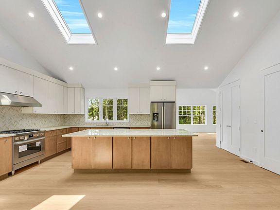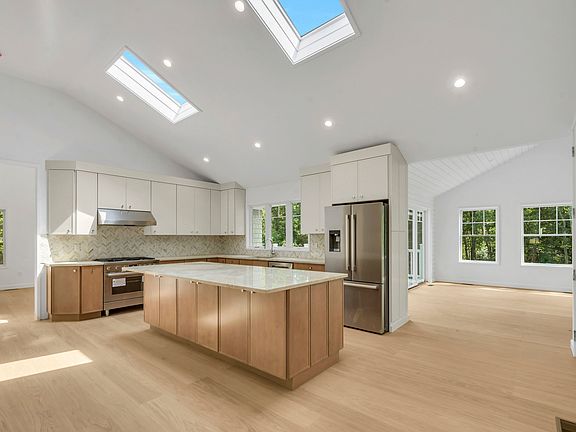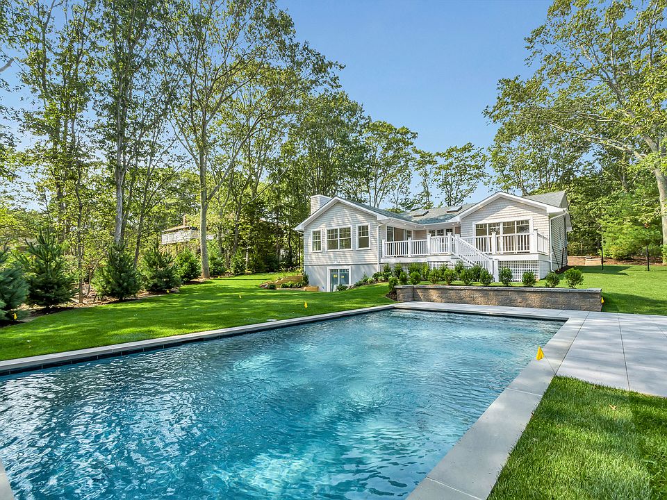 Welcome to 50 Valley Rd - a newly renovated contemporary retreat offering 3 bedrooms, 3.5 bathrooms, and 3,480 A± square feet of finished living space across three levels, with a 16' x 36' heated gunite pool as the centerpiece of its outdoor oasis. Set on a spacious half-acre just minutes from Long Beach and Sag Harbor Village, this home is designed for modern living and effortless entertaining. Outdoors, enjoy a bluestone patio and an expansive deck perfect for outdoor dining and gatherings, framed by bluestone pavers and landscaped grounds. A buried propane tank and private water well enhance the property's thoughtful infrastructure. Inside, the open-concept layout features white oak engineered flooring, 96" interior doors, and Marvin windows and sliding doors that fill the home with natural light. The kitchen showcases Bosch appliances, quartz countertops, Kohler fixtures, and Emtek hardware, blending luxury with function. The living room centers around a gas fireplace with shiplap detail, creating a warm, inviting space.The primary suite boasts spacious living with a luxury modern bathroom, while a dedicated laundry room adds convenience for year-round living. The fully finished lower level offers versatile space for a media room, gym, or recreation. Modern HVAC ensures comfort in every season, while premium finishes throughout make this property move-in ready. Whether as a year-round residence or seasonal escape, 50 Valley Rd delivers Hamptons luxury, convenience, and style-just minutes to Long Beach, Sag Harbor Main Street, shops, and dining.