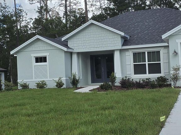 Palmwood Independence 3/2/3 + Flex-space with a Craftsman elevation nearing completion on a generous .34 acre lot! The Double-door entry opens into a spacious foyer, welcoming you to an Open-Concept Floor-plan. Luxury Plank Vinyl main living and the owner's bedroom, guest bedrooms carpeted, and bathrooms tiled. Well-appointed kitchen with LARGE ISLAND, WHITE CABINETRY, soft close doors & drawers, STAINLESS-STEEL APPLIANCES including the refrigerator with water & ice dispenser, D/W, microwave hood, washer, dryer, and range, PANTRY, and ARRIVAL/COFFEE CENTER. QUARTZ countertops throughout house. This one is a jaw-dropper! Primary suite boasts tasteful design and upgrades including DUAL SINKS, walk thru SHOWER, freestanding tub, and DOUBLE WALK-IN CLOSETS. LARGE LANAI with nature views! Includes LANDSCAPING, additional SOD, SPRINKLER SYSTEM, LED surface-mount lighting, DESIGNER LIGHTING package, and so much more. Don't miss your chance to own this beautifully designed & appointed PALMWOOD home! ***** HOME WARRANTY INCLUDED!