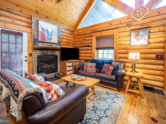 Nirvana in Yellowstone Village – Deep Creek Lake! Discover the perfect mountain retreat in this 2-bedroom, 2 full bath log chalet, ideally situated in the highly sought-after Yellowstone Village community at Deep Creek Lake. This inviting home blends rustic charm with modern comfort, offering both a relaxing escape and an excellent investment opportunity. Step inside to a warm and open living space, highlighted by a stunning stone wood-burning fireplace and vaulted ceilings that enhance the chalet-style design. The large covered front porch welcomes you with timeless appeal, while the side deck is a true outdoor oasis—complete with a private hot tub, privacy walls, and ample room for grilling and entertaining. The main level features a comfortable bedroom and full bath with a tiled shower. Upstairs, you’ll find a cozy primary suite with its own private full bathroom. Perfectly located, this home is just minutes from Deep Creek Lake State Park, marinas, popular restaurants, and the Wisp Resort—making it ideal for both year-round living and vacation stays. As an established Airbnb rental, this home consistently grosses over $63,000 annually, offering exceptional income potential. This property is one of the few rental homes at Deep Creek Lake that truly cash flows, offering exceptional investment potential—and it can also be purchased together with the neighboring log cabin at 30 Village Drive, nearly doubling your rental income opportunity. The condo association ensures maintenance-free living, taking care of exterior upkeep, insurance, mowing, plowing, and refuse, so you can simply relax and enjoy all that Deep Creek has to offer. Whether you’re seeking a turnkey rental, a vacation getaway, or a cozy mountain home, this Yellowstone Village log home delivers it all!