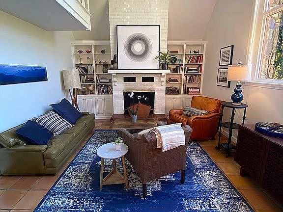 *We are under contract with backup offers in place.* This unique chalet style A-Frame is located in a desirable Tryon neighborhood near Harmon Field, just minutes from both downtown and I-26. Easy access & in/out with long, flat driveway including turnaround area. Split level 3/2 floor plan is ideal for families or houseguests. Downstairs offers a soaring family room with 2-story windows (complete with custom blinds), home office nook, wood burning fireplace, built-in bookshelves, and storage closet. Kitchen/dining room with sitting area and outside access is separated from both living room & downstairs sleeping quarters with 2 sets of pocket doors for privacy. Two spacious bedrooms, ample closets, and 1 bath with tub are also located on the lower level. HVAC & baseboard heaters regulate the downstairs. A generous master suite upstairs is separated from the landing by custom barn doors made of local reclaimed wood. A cozy sitting area leads to master bath and a vaulted bedroom with 2 large closets. Balcony off master overlooks nature and the expansive backyard. Upstairs rooms are heated/cooled with 2 new split AC units to ensure customizable comfort in all seasons. A covered entryway connects home with garage and a large, separate laundry room. 3 hot water heaters ensure you never run out! Fenced dog area is accessed from both front and kitchen doors. Large lot (nearly an acre) is set back from the road, feels quite private, and offers winter mountain views. Extensive handsome stonework throughout property, Updated windows, tile floors up and down (Mexican Saltillo tile & wood look porcelain), hardwood stairs, large tiled master shower, extra tall baseboards.