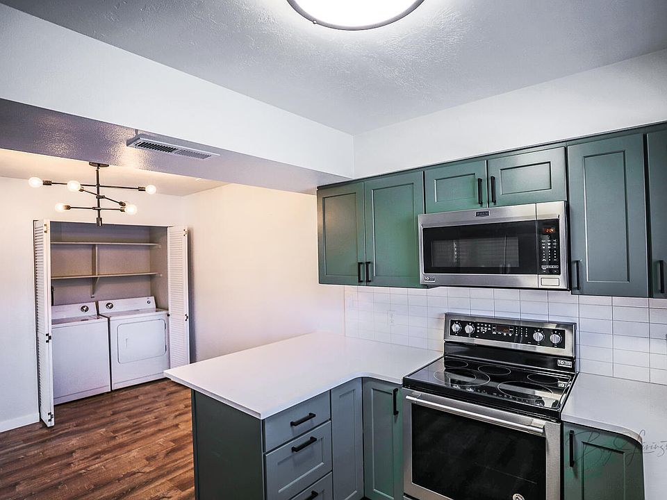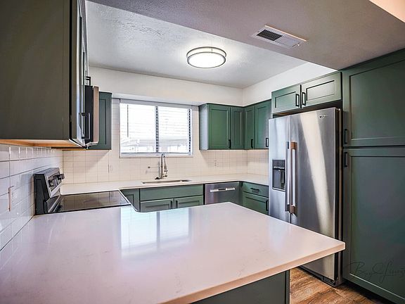 Very clean well kept townhome, great first time home or rental. 2 bedroom 2 bath and pretty kitchen.  Great location . Close to downtown St George and Utah Tech University. Washer, dryer, fridge  included