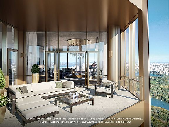 Tower residence 62 is a full floor home spanning 9,678 interior square feet and 1,025 square feet of outdoor space spread across two private loggias. This grand home features 6 bedrooms, 7 bathrooms, and 2 powder rooms. At the home's private entry lobby, a gracious foyer opens into the impressive 2,000 sf grand salon with up to 14'6 ceilings. The banquette-size formal dining room is adjacent to the custom chef's kitchen and breakfast room. An expansive primary suite includes two bathrooms, two dressing rooms, and a private sitting room. Relish in unforgettable 360-degree views of Central Park, The Hudson River, and the NYC skyline throughout this extraordinary home.