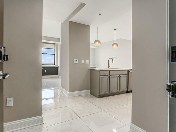Stunning two bed, two bath condo on the 20th floor of the iconic LeVeque Tower! Offering nearly 1,300 sqft with an open, yet functional, layout and windows on two sides providing breathtaking views of Columbus! A neutral kitchen with grey cabinetry, white quartz countertops and SS appliances + gorgeous marble flooring and spacious bedrooms & closets + in-unit laundry! LeVeque Tower offers hotel-like living in a prime downtown location just steps away from the Scioto Mile & all of the downtown attractions, and offers amenities such as a 24-hr concierge, on-site restaurant & Starbucks, fitness facility & a 100% tax abatement! What an incredible opportunity! Attached garage parking available!