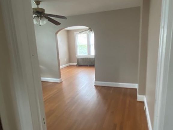 Freshly painted, new carpet, hardwood floors, 2 bedrooms, 1 bath, living room, dining room, kitchen and off street parking. Included all appliances, 1/2 garage and fenced in yard.