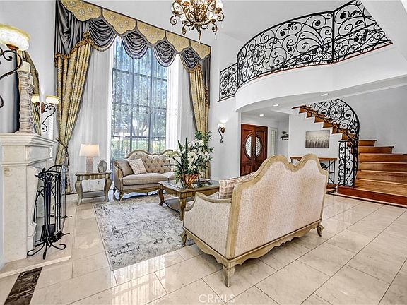Step inside to an open floorplan with a spacious living area featuring Double door entry, 20 Ft. Hts ceiling with gorgeous chandelier, glazed walls window from floor to ceiling height invites abundant natural light with unobstructed view, a beautiful marble fireplace, , marble flooring thru out entire first floor, Formal Dining overlooks thru French glass doors to the beautiful courtyard.