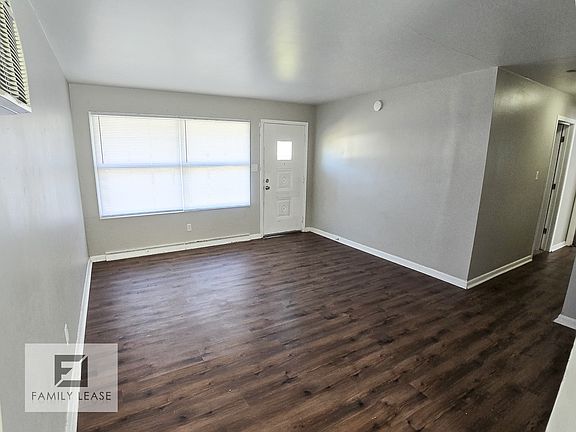 Why just rent when you can become a HOMEOWNER with lease-to-own? Single story ranch home with attached carport. Neutral interior is ready to be personalized. Front living room with wall A/C unit and adjacent dining area. Galley kitchen with white cabinets includes oven range and fridge. 3 carpeted bedrooms. Hall bath has nice tub/shower combo. All electrical just brought up to code including new 100 amp service and electric panel. Single-car attached carport with storage closet. Concrete driveway offers additional off-street parking. Grassy back yard. Situated on a little cul de sac with an empty grassy lot on one side.