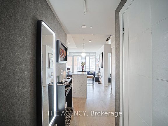 Stunning south-facing 1-bedroom + den suite with floor-to-ceiling windows, custom designer upgrades, and wide-plank flooring throughout. Features a modern kitchen with full-size stainless steel appliances, quartz island, and high-end dishwasher. Spa-inspired bathroom with rain shower and massage jets. Enjoy a full-width private balcony with city views, a spacious den with built-ins, and in-suite laundry. Prime Location Steps to subway station T, hospitals, TTC, shops & dining.-TMU, U of