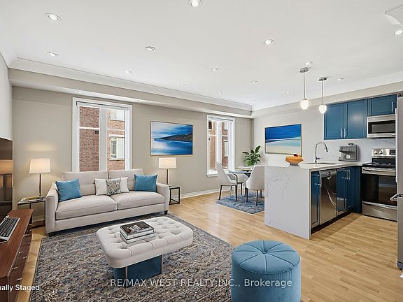 Welcome to Liberty Village and this wonderful 2 bedroom, 2 bathroom townhome offering about 1,100 square feet of living space plus a private rooftop terrace with CN Tower and Toronto skyline views. The kitchen features quartz counters with a sleek waterfall edge and stainless steel appliances. Both bathrooms have been updated with contemporary finishes. The layout is spacious and versatile, with well-proportioned rooms and the convenience of in-suite laundry. Your own outdoor rooftop terrace retreat spans almost 20 by 15 feet offering you the ideal outdoor space for entertaining, relaxing, or simply enjoying the views of downtown Toronto. A parking space and storage locker are included with this townhome. This home is located in the heart of Liberty Village, one of Toronto's most vibrant and connected communities. You are steps to shops, restaurants, grocery stores, and cafés, with nearby parks, Trinity Bellwoods, the lakefront, BMO Field, and Budweiser Stage close by. Commuting is simple with TTC, Exhibition GO Station, and the Gardiner Expressway close at hand. An exceptional opportunity for buyers seeking great space and a private rooftop terrace in Liberty Village.