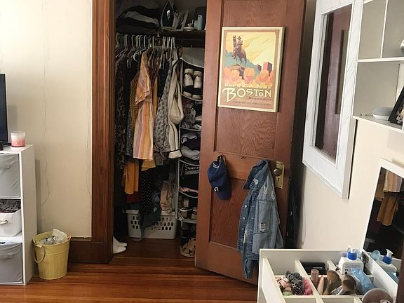NO FEE Available 9/1 TOP FLOOR UNIT- LOTS OF LIGHT! There are 3 large bedrooms and 2 full baths! One bathroom is in the back bedroom-- all rooms have closets + hall closet! The apartment includes high ceilings, built in hutch, white walls, BEAUTIFUL front porch with large sliding windows & electricity out there. Large eat in kitchen, dining room AND living room. There is one parking space included in the rent Gas heat, electric cooking, -- utilities paid by tenant. Landlord pays water & sewer. One parking space is INCLUDED in the rent OFF STREET in driveway. Coin op Laundry available in basement. All that is required to sign a 1 year, 2 page lease is a completed rental application and your last month's rent. There is NO SECURITY fee or BROKER fee. Deal directly with the owner. Well maintained 3 family on Wheatland Street, Somerville.
