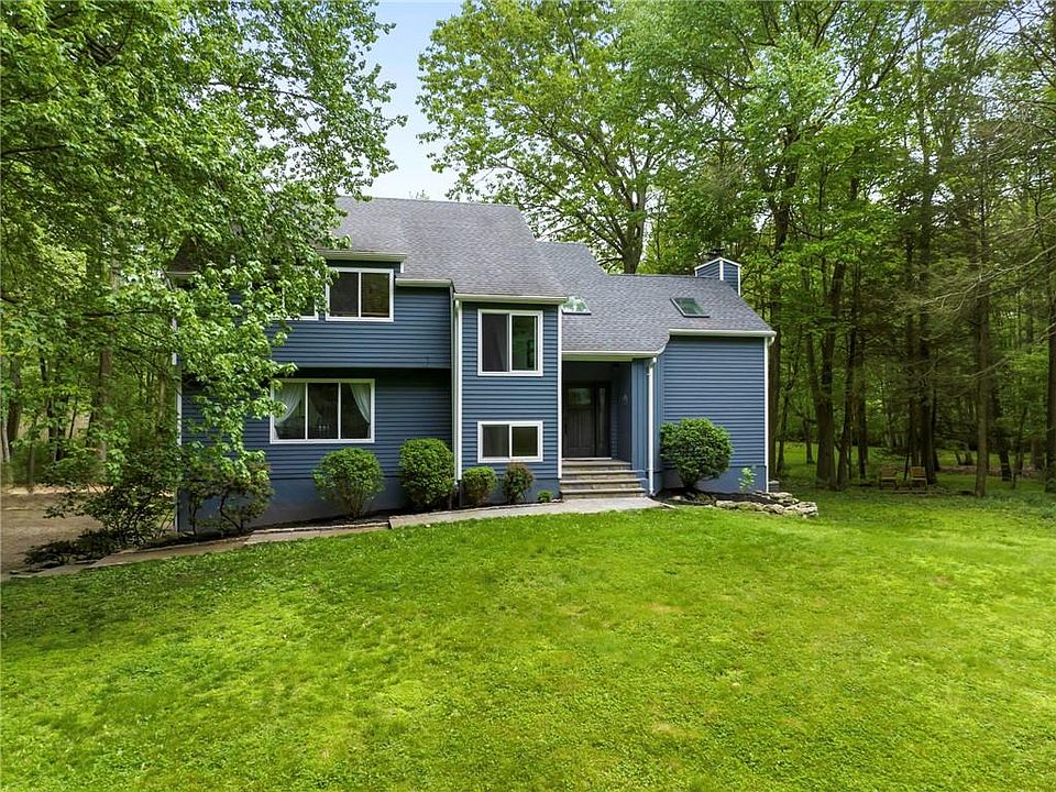 Nestled in nature and set back from a quiet country road, this wonderful Colonial home on two completely level acres, abuts a small lake at the end of an expansive lawn. Perfect as a full-time or weekend retreat. Bright welcoming foyer with a cathedral ceiling and skylight. Custom eat-in kitchen flows to a screened-in porch overlooking an open lawn, lake, and woodlands; a great room w/fireplace and vaulted ceiling; and spacious living and dining rooms. All perfect for everyday living and superb entertaining. The primary bedroom/bath suite, three additional bedrooms and bath are well-proportioned and round out the second level. The walkout, newly finished lower level w/powder room provides tremendous versatility. Peaceful and private, the backyard is a nature lover's paradise. All within a terrific neighborhood. Conveniently located with easy access to the Stamford train, major highways, hiking trails, shops, eateries, schools, and award-winning golf. An hour from Manhattan. Additional Information: HeatingFuel:Oil Above Ground,ParkingFeatures:2 Car Attached,