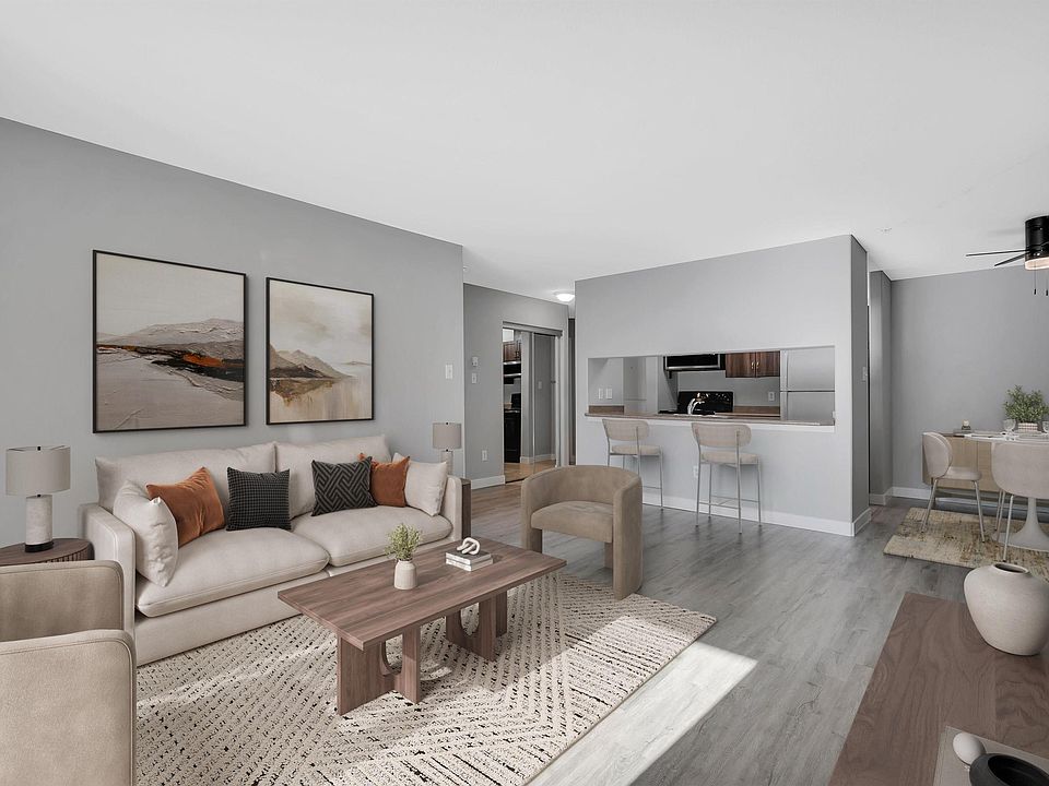 Welcome to Fort Gardens! This main-floor, 2 bed/2 bath condo features updated vinyl flooring and 2 parking stalls (underground & surface). Beyond the kitchen, the open and practical layout welcomes you into the living room, with access to your east-facing patio space. The primary suite features a walk-through closet and your 3-piece ensuite. The 2nd bedroom provides an ideal space for a home office or spare room, with an adjacent 4-piece main bath. Off the front entry lies the in-suite laundry room with plenty of space for additional storage. Convenience is key with the exercise room just a few doors down. With easy access to Veteran's Way, Dow Centennial Centre, walking trails, and shopping, you'll be close to all the action.