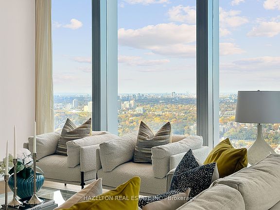 Experience unmatched luxury with breathtaking views at this rare opportunity in Four Seasons Private Residences, on the north-east corner of the 48th floor. This size and high floor rarely becomes available. Revel in truly unobstructed panoramic views stretching across the cityscape, and Rosedale Valley, offering a spectacle of sunrise and sweeping vistas from floor-to-ceiling windows. This remarkable suite stands apart with its redesigned, custom-built floor plan (far from the standard layout) , offering a unique living experience tailored for comfort and style. Soaring ceilings (with no bulkheads) and a generous 12 x 12 ft corner balcony provides a sweet spot for morning coffee or evening cocktails. The open entertaining space is generously proportioned, and the family room could be used as a second bedroom if preferred. The kitchen is like no other, exceptionally large and well planned with an abundance of storage and marble countertop space plus a walk in pantry. The primary suite is extravagant with an abundance of built ins, two walk in closets and a decadent spa like 7 piece ensuite. Truly a wonderful spot to call home in the heart of Yorkville.