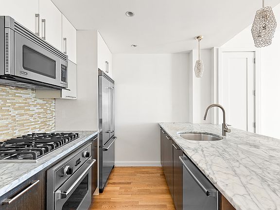 Building amenities include a 24-hour doorman, fitness center, children's playroom, resident lounge, and landscaped sundeck. Conveniently located near the F, R, and G trains, Prospect Park, and the best of Park Slope and Gowanus.